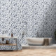 Papier peint motif feuille de ligne abstraite bleue. Rafraîchissez votre espace avec ce papier peint motif feuille de ligne abstraite bleue. Idéal pour un fond de cuisine, salle de bain et plus.