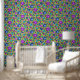 Le papier peint coloré - Motif Pois en bleu rose Turquoise sur Arrière - plan jaune - est une oeuvre artisanale humaine, qui répète en douceur le Polka Dot Artwork, qui est gai, heureux et esthétique. Les couleurs principales de ce motif à pois sont le bleu clair et foncé, le rose clair et foncé, le mauve, le jaune clair, le turquoise et le turquoise.