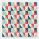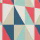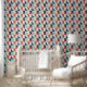 Papier peel et bâton tendance avec un motif géométrique de triangles bleu, rouge et beige, offrant une ambiance rétro design pour des espaces modernes