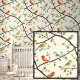 Papier Peint Oiseaux verts rouges mignons du printemps sur la c