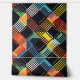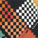 Cette oeuvre présente un motif de mosaïque dynamique et coloré composé de carrés et de rectangles pixelisés en forme de damier. Le design est un mélange vibrant de couleurs, dont les rouges, les jaunes, les bleus et les verts, dressé contre un arrière - plan noir foncé. Les éléments pixélisés se chevauchent et se croisent, créant un sens de profondeur et de mouvement dans la composition. La combinaison de formes géométriques et de couleurs vives, ainsi que l'effet de pixelisation numérique, donne à l'oeuvre une esthétique moderne d'inspiration technologique tout en ressemblant à un motif de courtepointe traditionnel.