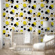 Ce fond d'écran amusant présente des pois en jaune, or, noir et rayures. L'accent parfait ajouté à votre décor maison.