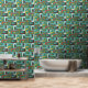 Papier Peint Retro Mod Ovals Coussin Turquoise Aqua Green Brown