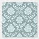 A vintage style decorative damask surface pattern influenced by rococo classical design in duck egg blue color detail on a teal background.