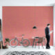 Papier Peint Rose chaud gras moderne - Motif Abstrait jaune