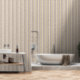 Ce papier doux rose, jaune et marron à rayures multiples est une façon élégante de décorer une pièce.