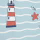 Dive into a delightful underwater adventure with this charming nautical pattern. Against a soft blue, wavy stripe background, adorable hand-drawn illustrations of smiling blue whales, cheerful sailboats, classic red and white lighthouses, anchors, starfish, and compasses create a fun, repeating design. This playful, gender-neutral pattern is perfect for adding a touch of coastal whimsy to a baby nursery, toddler bedroom, playroom, or bathroom. The simple, cheerful art style and soothing colors evoke the joy of the ocean and make it an ideal choice for creating a bright, breezy maritime space. Search ID1228 to see other products with this cute pattern. Note: design adapted from generative content.