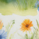Les animaux de ferme d'aquarelle vaches hautes terres dans un champ de fleurs.