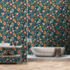 Joli papier peint fleur sauvage peel et bâton design pour un mur d'accent ou mur plein. Arrière - plan vert.