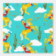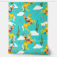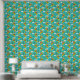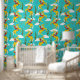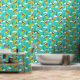 Ajoutez une touche sauvage à vos murs avec ce papier peint à motifs d'ouest sauvage. Il a un style campy rétro avec des cowgirls et des chevaux aux couleurs vives, cactus, fer à cheval, nuages et lassos sur fond bleu vif.