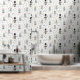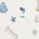 Le design est composé de West Highland Terriers blancs avec divers accessoires en bleu et noir tels que chapeaux, lunettes, cravates, écharpes et os sur un arrière - plan blanc. Montre ton amour pour Westies !