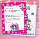 Add your child's name to this personalized letter from Santa. Cute pink and white Christmas gift and candy canes in a Kawaii style. The back has an adorable penguin sledding down a hill coloring page!