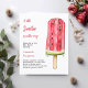 Un arrière - plan blanc chic. Décoré d'un grand bâton pop melon. Personnalisez et ajoutez le nom de la mère à être et les détails de la fête. Texte : Un petit Sweetie est en route. 1 feuille = 1 invite imprimé bord à bord.