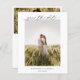 Mariage à budget de style classique enregistrez la date avec un design noir et blanc simple et minimal avec une combinaison de polices serif traditionnelles et un script élégant avec votre date dans un grand format pour une touche moderne avec votre photo préférée. Le dos a une deuxième photo pour un total de deux photos. Cet élégant enregistrement de la date est idéal pour un mariage formel.
