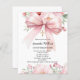 Un arrière - plan blanc, décoré d'un grand arc rose et d'une croix dorée et de fleurs roses. Personnalisez et ajoutez un nom et des détails. 1 feuille = 1 invite imprimé bord à bord.