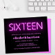 Une invitation pour son 16e anniversaire, avec "seize" en néon rose vif et chaud, à la cool, pour une arrière - plan qui souhaite un petit budget.