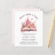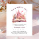 Personnalisable rose princess anniversaire invitation papier abordable, avec un palais de princesse rose magique avec des fleurs et un livre de conte de fées.