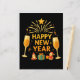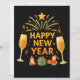 Celebrate the New Year with this warm golden festive illustration featuring Santa figures, gifts, shining stars, and elegant party elements. A bright and joyful design that adds a magical touch to every New Year celebration