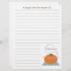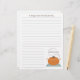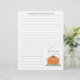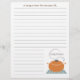 Papier recette avec lignes optionnelles, qui peut être enlevé. En bas se trouve l'illustration d'un pot à cuisine orange avec poignées et couvercle. Pot est assis sur une surface bleue et blanche et a de la vapeur venant sous le couvercle. Texte du haut : "Une recette de la cuisine de..." Personnalisez avec votre nom au-dessus du pot en bas. Recherchez le classeur de recettes correspondant (ci-dessous.) com