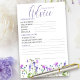 Fiche de prédictions et conseils pour convenir baby shower fleur sauvage, fille ou thème floral d'été. Une activité amusante pour impliquer les invités à votre baby shower, avec des paroles de sagesse pour les parents d'être. Le design botanique délicat et féminin est écrit à la main avec des "conseils" en calligraphie de script élégante. Il a une jolie bordure de fleurs sauvages aquarelles dans les tons lilas, lavande, violet, rose et bleu. Un dainty floral moderne avec girly, bohème cottage thème jardin. S'il vous plaît voir ma collection Fleur sauvage violet pour les articles correspondants ou, m'envoyer un message pour créer les modèles dont vous avez besoin.