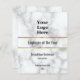 Ce prix a un faux design en marbre blanc et un modèle de texte gris. Il y a des lignes pour le nom de la bourse (Montré : Employé de l'année), le nom du récipiendaire, le titre de l'employé, le nom de l'entreprise et l'année où la bourse est présentée. Tout le texte peut être modifié ou supprimé. En haut, il y a aussi une image d'affichage que vous pouvez remplacer par le logo de votre entreprise. Les détails de l'or sont un rendu artistique (pas de papier peint).