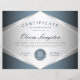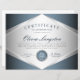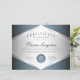Le certificat d'appréciation professionnel en argent métallique bleu doux comprend une médaille en argent brillant et en bleu.
