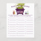 Joli thème halloween baby shower bébé nom carte de jeu avec une illustration du chaudron de sorcière violette fumant fumée verte avec des bougies et des potions. Les textes sont modifiables. Un jeu parfait à jouer sous la douche. Il demande aux clients d'écrire des noms de bébés qui commencent par chaque alphabet. Celui qui finit tous les alphabets gagne d'abord !