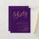 Une invitation design et moderne pour une fête du 60e anniversaire. Un arrière - plan de couleur violette et le mot Sixty écrit avec d'élégantes grandes lettres de script en faux or. Personnalisez et ajoutez un nom et des détails du parti. 1 feuille = 1 invite imprimé bord à bord.