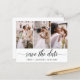 QR Code - Paysage moderne et élégant Horizontal Trois (3) Photo Enregistrer la date Magnet Mariage avec typographie manuscrite. L'aimant d'invitation de date inclut la typographie de script et le design chic et simple auquel vous pouvez ajouter votre photo de fiançailles customisée à.