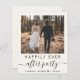 Un salon de crème légère ou un faire-part mariage privé à prix abordable et une invitation à la réception tout-en-un. Le devant présente votre photo, "Happily Ever After Party" dans un mélange de typographie simple et d'un script élégant avec des swashes et vos prénoms et date de mariage ou de réception réunis par un coeur. Au verso, personnalisez vos détails, entrez votre adresse de site Web mariage pour créer un code QR que les invités peuvent scanner pour voir vos photos mariages, tous les détails et à RSVP en ligne, et ajoutez vos noms dans un script signature. Ce papier semi-brillant budgétaire est similaire en poids au papier photo. Une version plus grande de 5x7 traditionnelle carte stock est également disponible (message nous pour le lien).