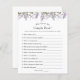 Carte de jeu de douche nuptiale avec aquarelle verte et fleurs violettes. Une façon amusante d'interagir avec les clients de douche.