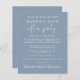 Bleu poussiéreux et économique enregistrez l'annonce de la date pour une réception ou une fête pour célébrer votre événement ou petit mariage. "Save the Date For Our Happily Ever After Party" est écrit dans un mélange de simple typographie blanche et un élégant script blanc avec des swashes. Personnalisez votre faire-part mariage plus en détail et ajoutez une partie ou une réception enregistrez les détails de la date et vos noms dans un script de type signature. Au verso, ajoutez vos prénoms et les dates de mariage et de réception.