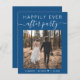 Étage bleu classique et économique, salle de mariages privative avec invitation à la réception. Le devant présente votre photo et "Happily Ever After Party" en typographie blanche et un script blanc élégant avec des swashes. Ajoutez vos prénoms et votre date de mariage. À l'arrière, personnalisez votre faire-part mariage et votre invitation de réception de manière plus détaillée, entrez l'adresse URL de votre site Web mariage pour créer un code QR que les invités peuvent scanner pour voir vos photos de mariage, tous les détails et à RSVP en ligne, et ajoutez vos noms dans un script signature.