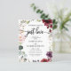 Belle et peu coûteuse invitation à mariage floral bordeaux. Facile à personnaliser avec vos détails. VEUILLEZ NOTER : Les enveloppes NE SONT PAS INCLUSES; les enveloppes A7 abordables sont disponibles pour l'achat séparément. PERSONNALISATION : Si vous avez besoin de personnalisation de la conception, s'il vous plaît contactez-moi jeter le conversation; si vous avez besoin d'informations sur votre commande, les options d'expédition, etc, s'il vous plaît contacter Zazzle support directement https://help.zazzle.com/hc/en-us/articles/221463567-How-Do-I-Contact-Zazzle-Customer-Support-. Consultez la collection pour trouver les objets correspondants comme autocollants de liste d'invités.