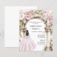 Une grande arche en marbre décorée de fleurs roses. Une fille avec une robe rose pâle. Personnalisez et ajoutez un nom et des détails. 1 feuille = 1 invite imprimé bord à bord.