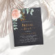 Arrière - plan de tableau de bord. Décoré d'or rose et de fleurs roses rousses, de fleurs roses et de feuilles d'eucalyptus vert aquarellés, de sprigs, de verdure et d'une fausse feuille d'or. Personnalisez et ajoutez le nom de la mariée à être et les détails du parti. Texte blanc et doré. 1 feuille = 1 invite imprimé bord à bord.