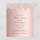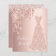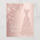 Elégante, classique, glamour et girly style nuptiale invitation à la douche nuptiale. Une robe en or rose et des gouttes. arrière - plan d'or rose. Avec le texte : Douche nuptiale sur l'avant écrite avec un script de style moderne en lettres de couleur blanche. Ajoutez les détails de votre événement sur le dos, en lettres gris foncé.