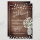 Ce design mariage abordable présente des fleurs d'aquarelle de bébé dans un vase en bocal en maçon sur un arrière - plan en bois rustique avec des lampes à cordes. Cliquez sur le bouton personnaliser pour plus de flexibilité dans la modification du texte. Des variantes de cette conception, différents types de papier, ainsi que des produits de coordination sont disponibles dans notre boutique, zazzle.com/store/doodlelulu. Contactez-nous si vous avez besoin que cette conception s'applique à un produit spécifique pour créer votre propre article de correspondance unique! Merci tellement pour voir un DoodleLulu par 2 june conception de bogues!