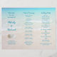 Accordion plie programme de mariage modèle avec arrière - plan de scène de plage. Deux dollars de sable décorent la première page, avec les prénoms du couple en caractères gras bleu aqua. Inclure un titre et d'autres renseignements sur la cérémonie. Deux autres sections tiennent l'"ordre de cérémonie" et la "fête de mariage". Tout le texte est imprimé en bleu à l'exception des en-têtes. Reverse est aussi une scène de plage avec un dollar de sable unique. Plier l'accordéon après l'achat - la section avant se plie en arrière et la section dernière se plie en avant - pour faire un grand programme qui s'ouvre vers l'extérieur. Choisissez n'importe quel type de papier.