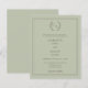 A sage green colored background decorated with a hand drawn crest. Warm taupe colored frames and text. Personalize and your monogram initials, names and details.