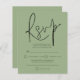 Sage Mariage de code QR du script budgétaire RSVP. Un prix économique PETIT 4,5 po x 5,6 po alternatif. Disponible dans un STOCK SEMI-GLOSS 110 lb CARD qui est l'option par défaut (plus épais pour les invitations), OU un STOCK SATIN FINISH 80 lb THINNER PAPER (idéal pour les boîtiers). Les enveloppes sont en option et légèrement plus grandes que la taille de la carte. Votre code QR du site Web mariage est au verso, il suffit de remplacer l'exemple de code. Une typographie stylisée en noir pour le titre principal RSVP complétant le reste du texte que vous pouvez facilement personnaliser.