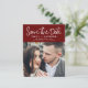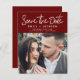 Budget Moderne et élégant Script manuscrit Carré Photo Enregistrer la Carte Mariage Date. La carte d'invitation à la date de sauvegarde comprend une typographie chic et élégante avec un design simple et minimaliste sur un arrière - plan bourguignon que vous pouvez ajouter votre photo fiançailles customisée à.