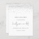 Script Élégant Budget Parties scintillant Argent Enregistrer La Date. Un prix économique PETIT 4,5 po x 5,6 po alternatif. Disponible dans un STOCK SEMI-GLOSS 110 lb CARD qui est l'option par défaut (plus épais pour les invitations), OU un STOCK SATIN FINISH 80 lb THINNER PAPER (idéal pour les boîtiers). Les enveloppes sont en option et légèrement plus grandes que la taille de la carte. Kindly Save Our Date est dans un script set moderne est au centre et le reste du texte que vous pouvez facilement personnaliser. Un faux borer de parties scintillant argenté est au sommet de chaque côté. Les couleurs du texte et de l'arrière - plan peuvent être modifiées si vous souhaitez mieux convenir à votre thème mariage via l'option customiser plus loin.