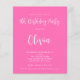 PAPIER | Script Hot Pink 9. Geburtstagsparty. A6 ist eine nahe, ohne Umschläge ausgelieferte, 4,5 x 5,6" Alternative, die ohne Umschläge erhältlich ist. Minimalistischer typografischer Stil für das neunte oder jedes andere Geburtstagsmädchen. Vollständig anpassbar. Ändern Sie den Text einfach und Sie können die Farben von Text und Hintergrund auch über Bearbeiten weiter ändern, wenn Sie möchten.