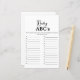 Quel objet bébé commence par chaque lettre ? La première personne à compléter la liste gagne ! Un jeu de baby shower gai avec un récit basique.