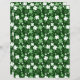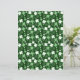 A whimsical shamrock print on a dark green background.