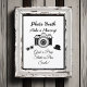 Panneau de cabine photo noir et blanc. Faites un souvenir, prenez un accessoire et faites une pose ! signe mariage.