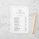 Feuille de papier de liste de prix noir et blanc classique avec une mise en page simple avec votre monogramme à l'intérieur d'une couronne / crête. Ci-dessous est votre nom dans un script élégant / calligraphie avec votre liste de prix / menu service. Le dos a vos heures d'opération, vos coordonnées, QR Code, icônes de médias sociaux et votre poignée de médias sociaux. Un design féminin et féminin pour tout type d'entreprise.
