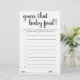 Simple "Devinez que la nourriture pour bébé" baby shower ou genre révèle une carte de jeu de devinettes de fête avec un script amusant et décontracté écrit à la main. Le design classique comprend une superposition de la typographie de citation à la main moderne. Pour d'autres couleurs ou produits correspondants, veuillez visiter le magasin JustFharryn Zazzle, ou contacter le concepteur, c/o Fharryn@yahoo.com Tous droits réservés. #bohochic #zazzlemade
