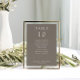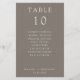 Simple, minimalist taupe wedding table number card with guest names seating chart.